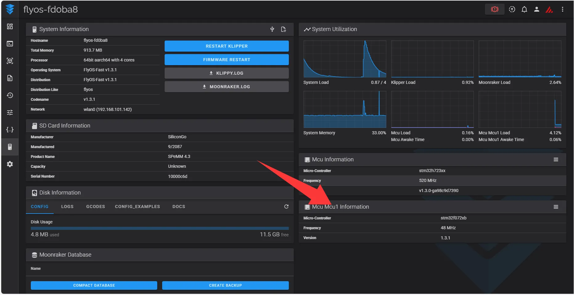 • 推荐操作界面:推荐使用 Fluidd 界面,它能更直观地显示 MCU 连接状态。