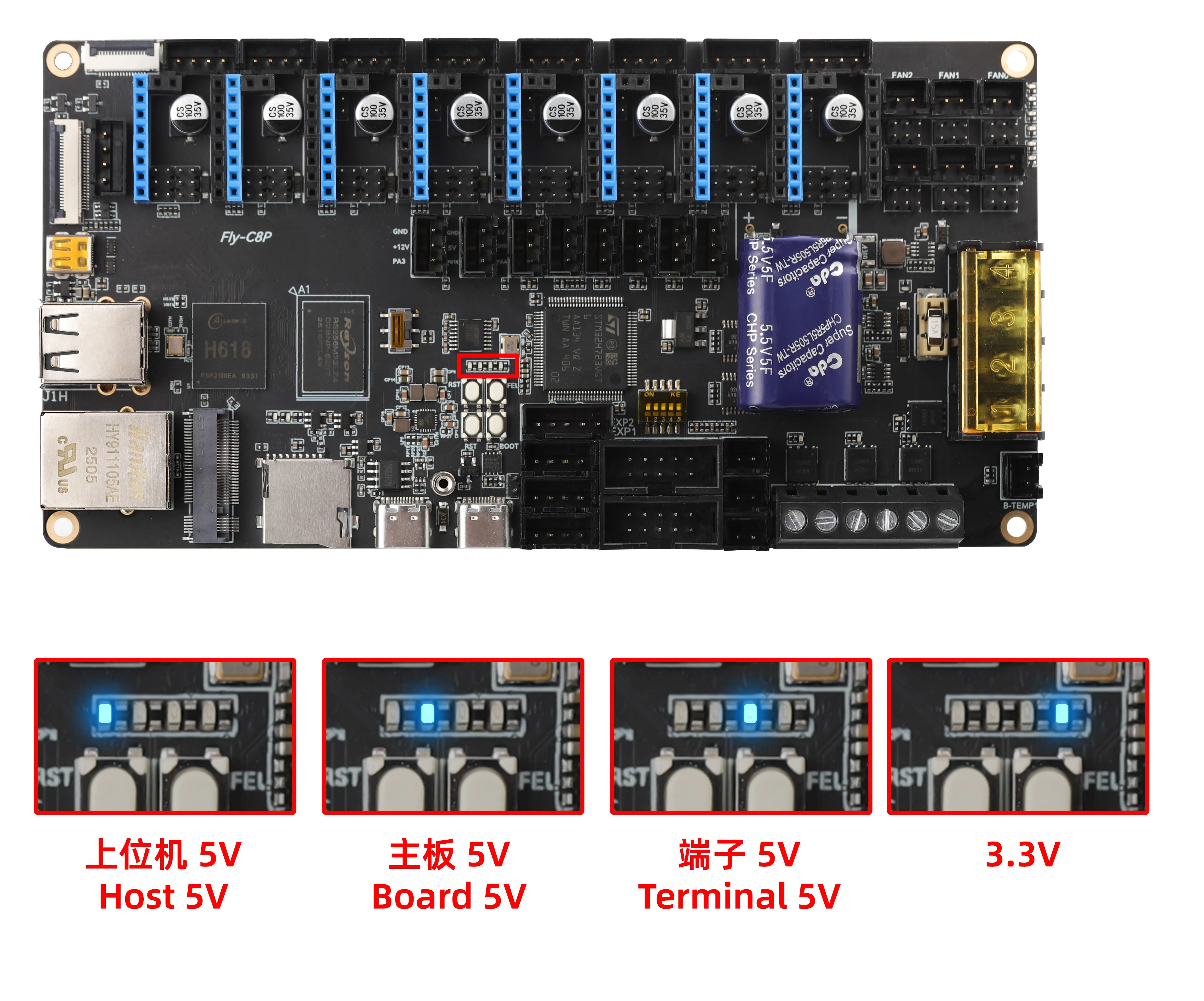 • 如果接上主板电源与驱动电源后5V灯不亮,需要联系客服售后