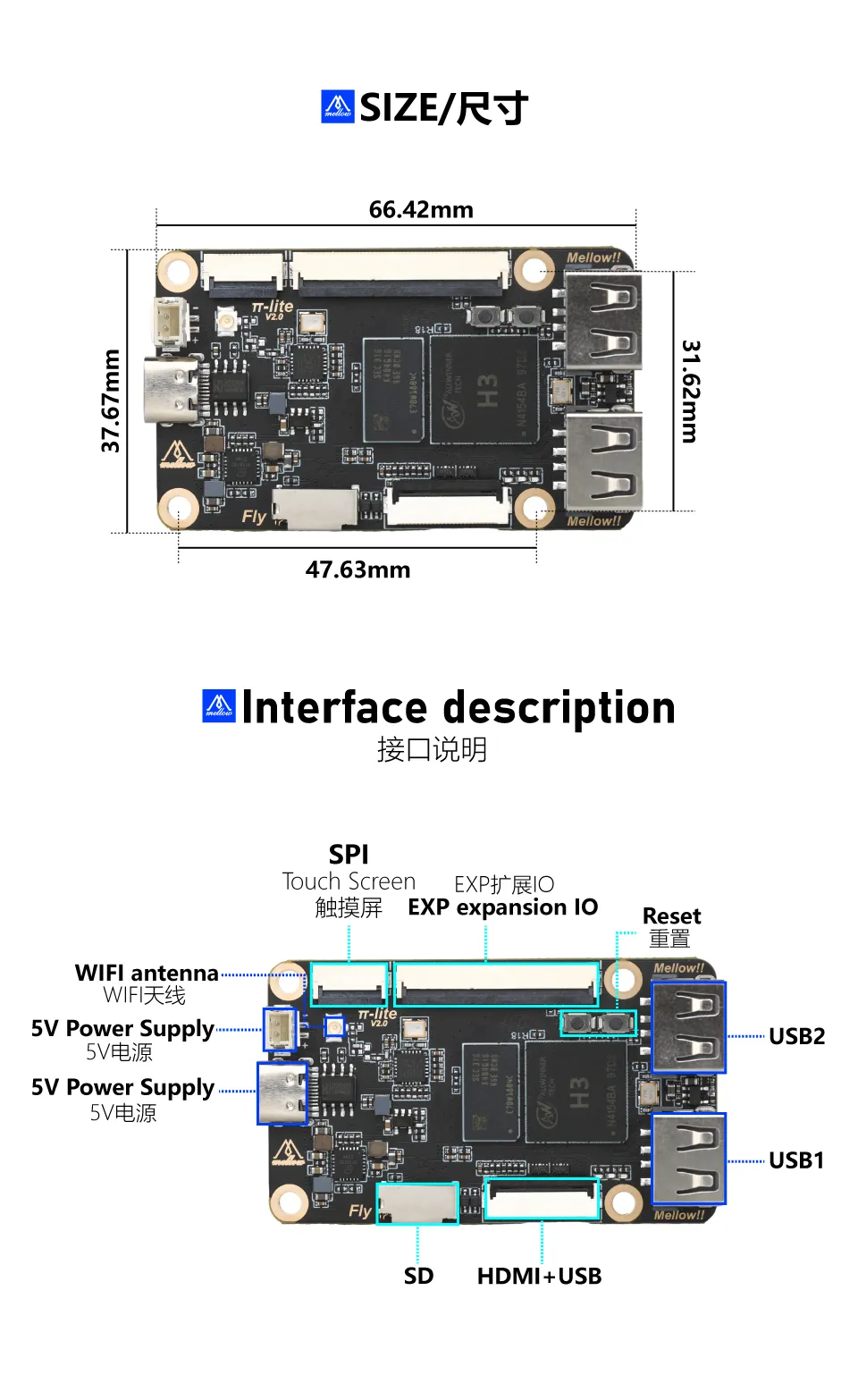 - CPU:高性能全志H3芯片,4核64位Cortex-A7