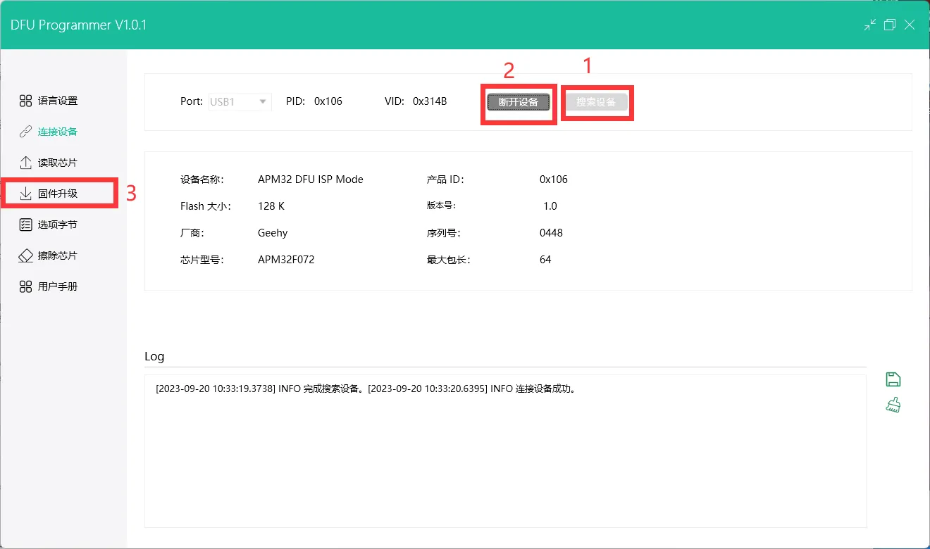 - 若未识别到 DFU 设备,请尝试重新进入烧录模式。
