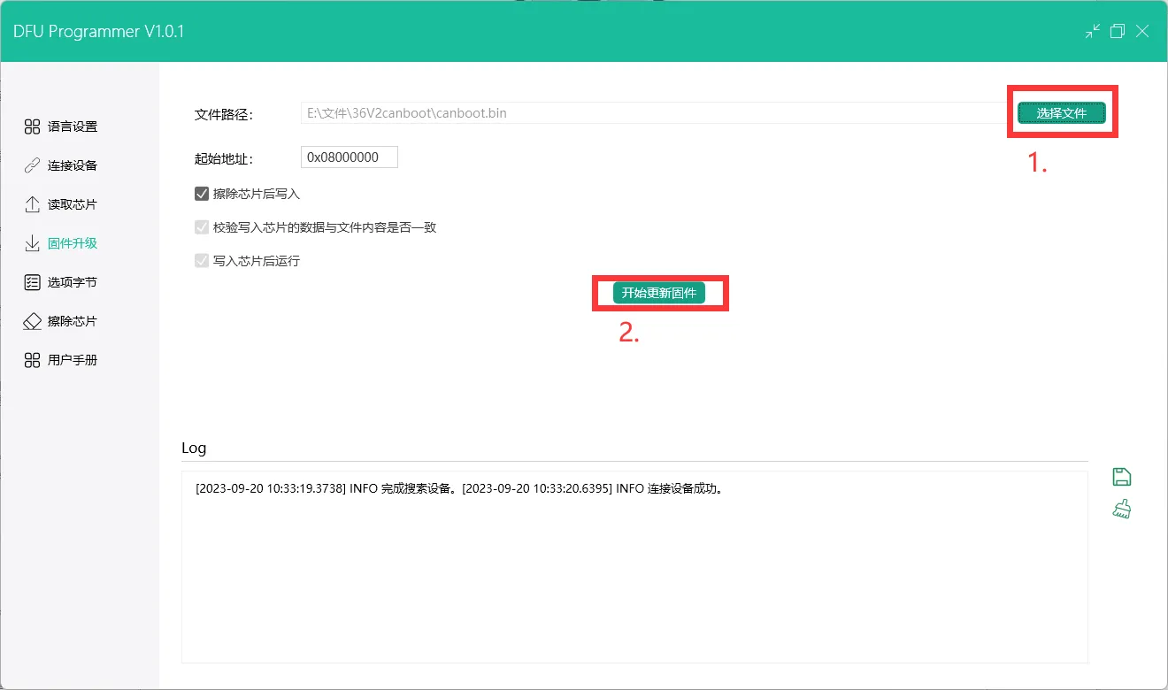 - 点击开始更新固件稍等即可,烧录完即可拔掉type-c与跳线帽