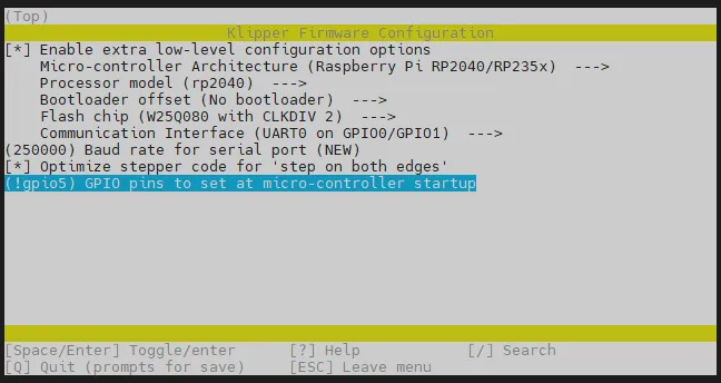 cd ~/klipper && rm -rf ~/klipper/.config && rm -rf ~/klipper/out && make menuconfig -