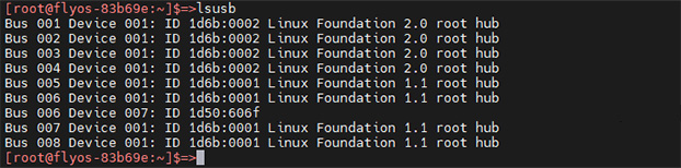 • Now that you have successfully logged in to the host computer, you can enter lsusb to search for devices. You may encounter one of the following situations: