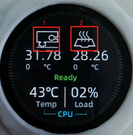 - Click: Enter the hotbed temperature setting, adjust the temperature by dragging the ring bar, and click the area 2 again to confirm the set temperature