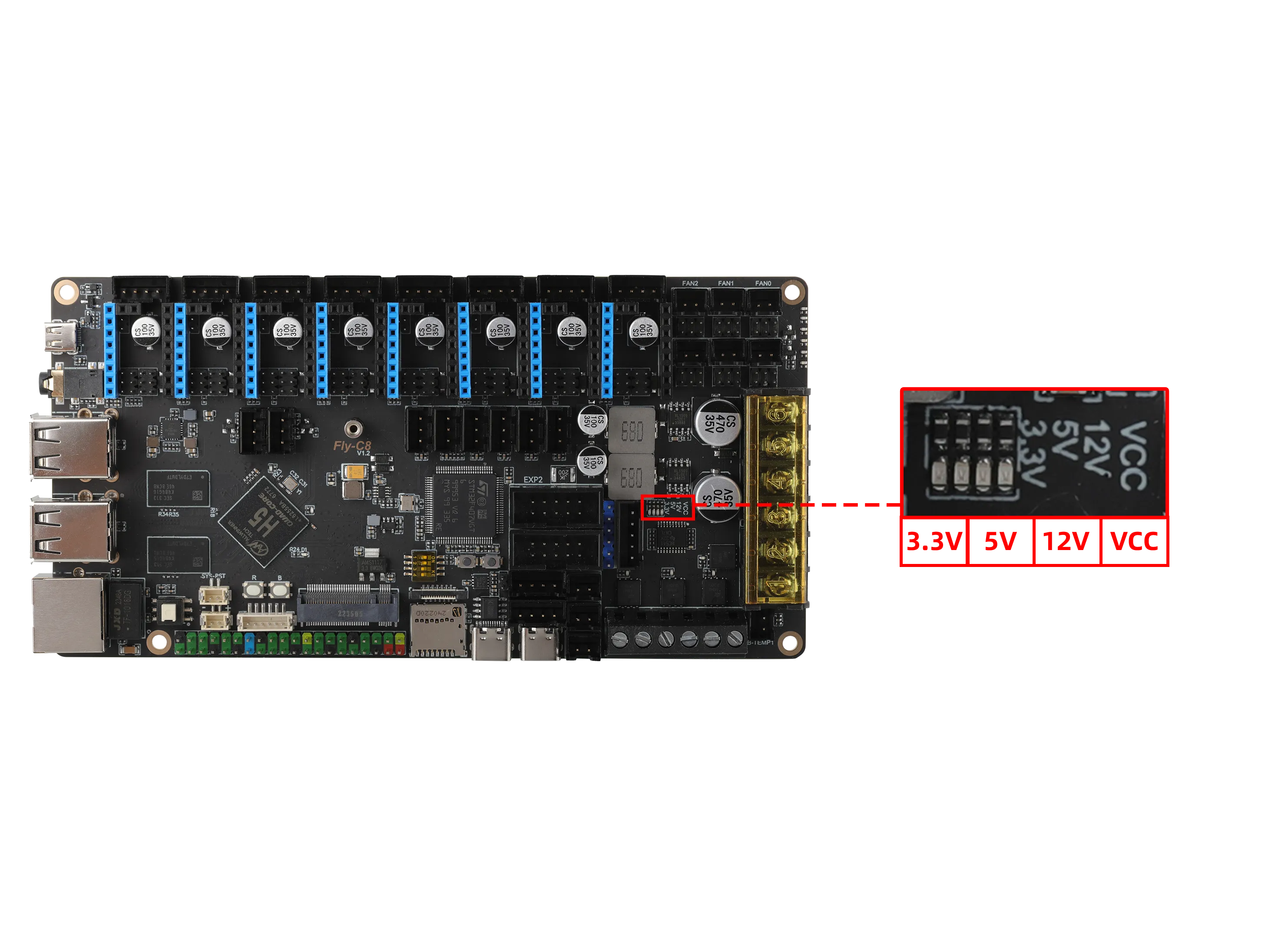• Only when powered via TYPE-C, the 3.3V light should remain steadily on