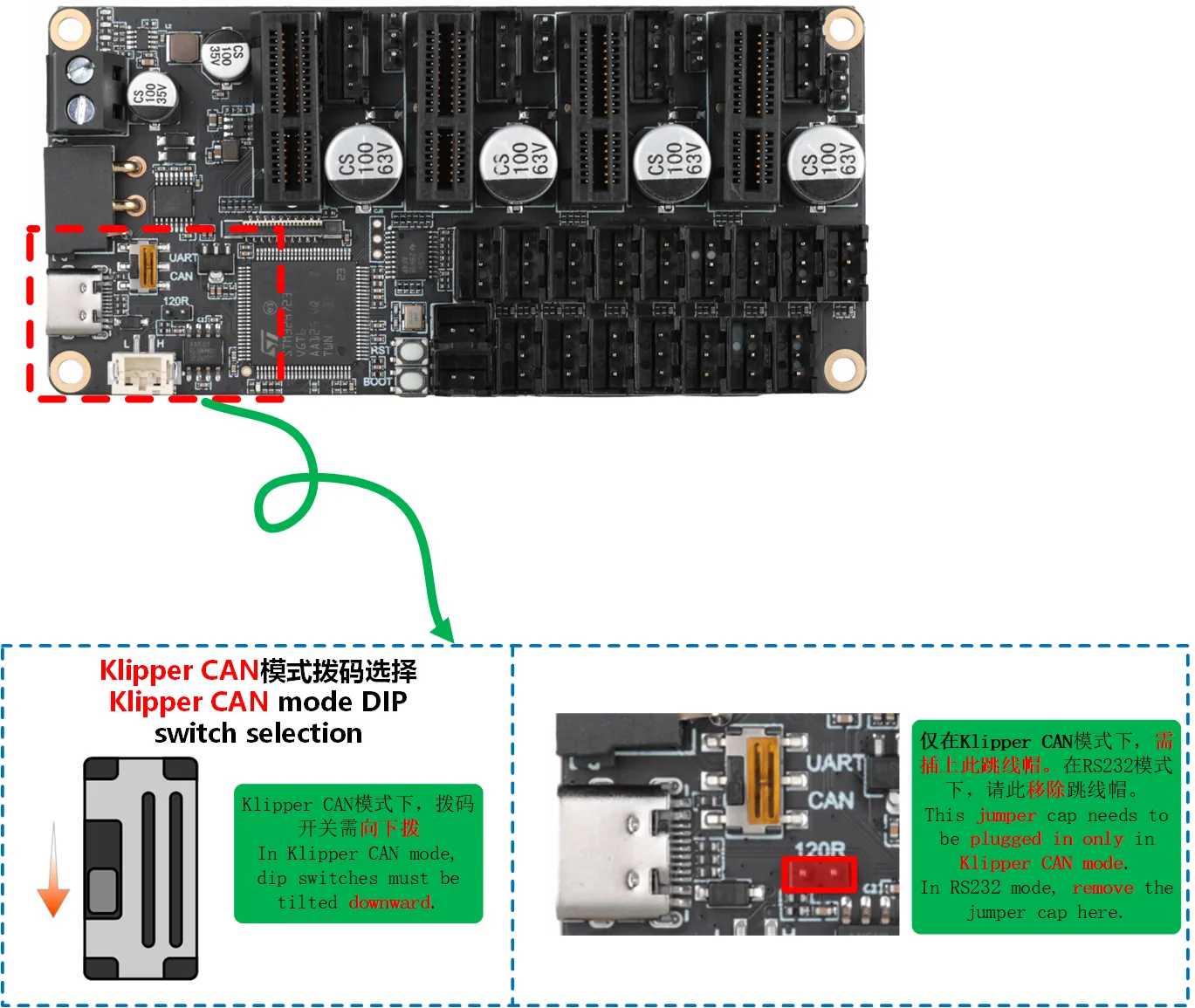 • The CAN speed of the toolboard must match that of the host computer, otherwise the ID cannot be found or the firmware cannot be flashed