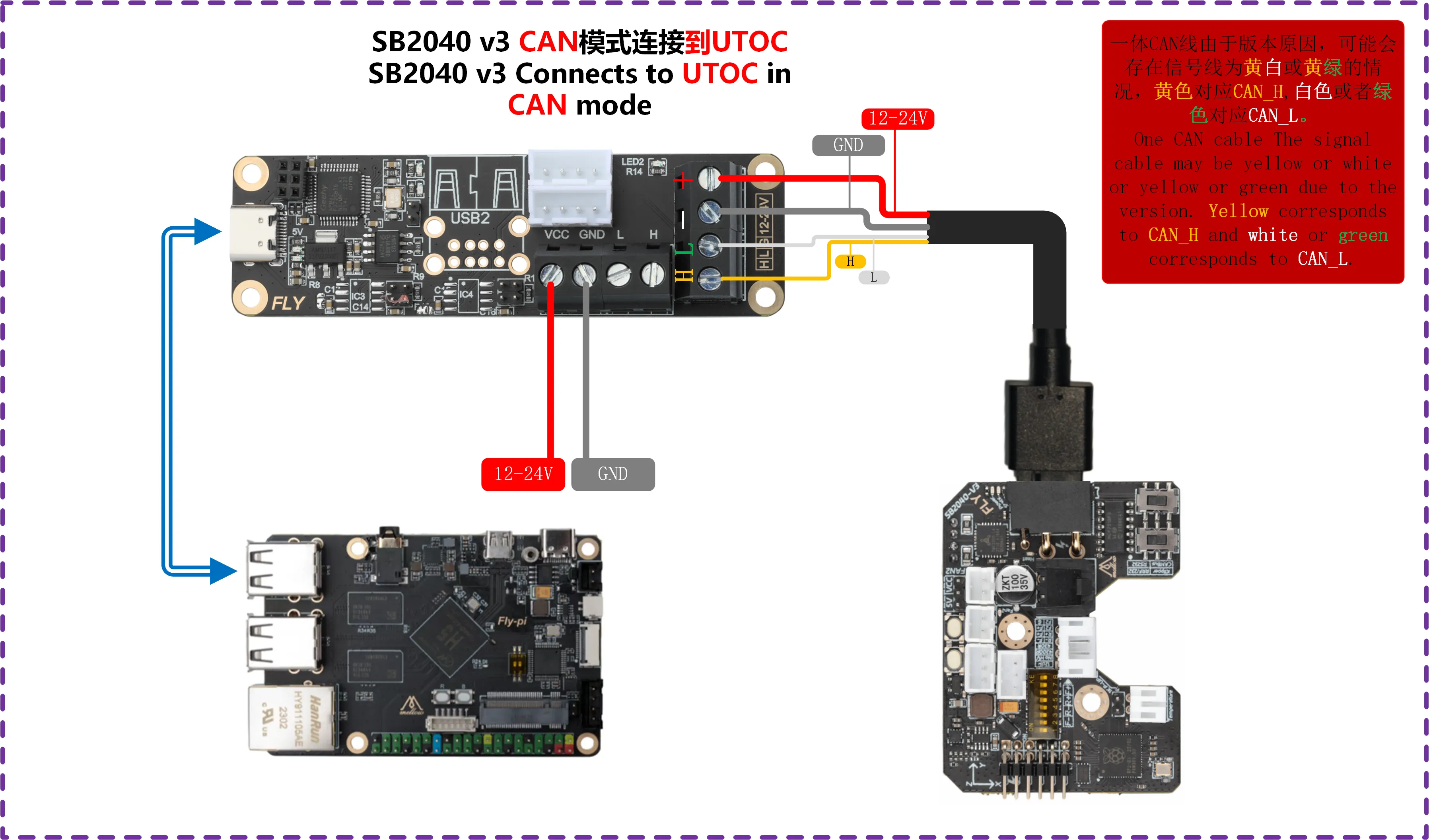 Connect the tool board to UTOC or a motherboard with bridging firmware using an XT30 data cable before flashing the firmware. The following is a reference wiring diagram