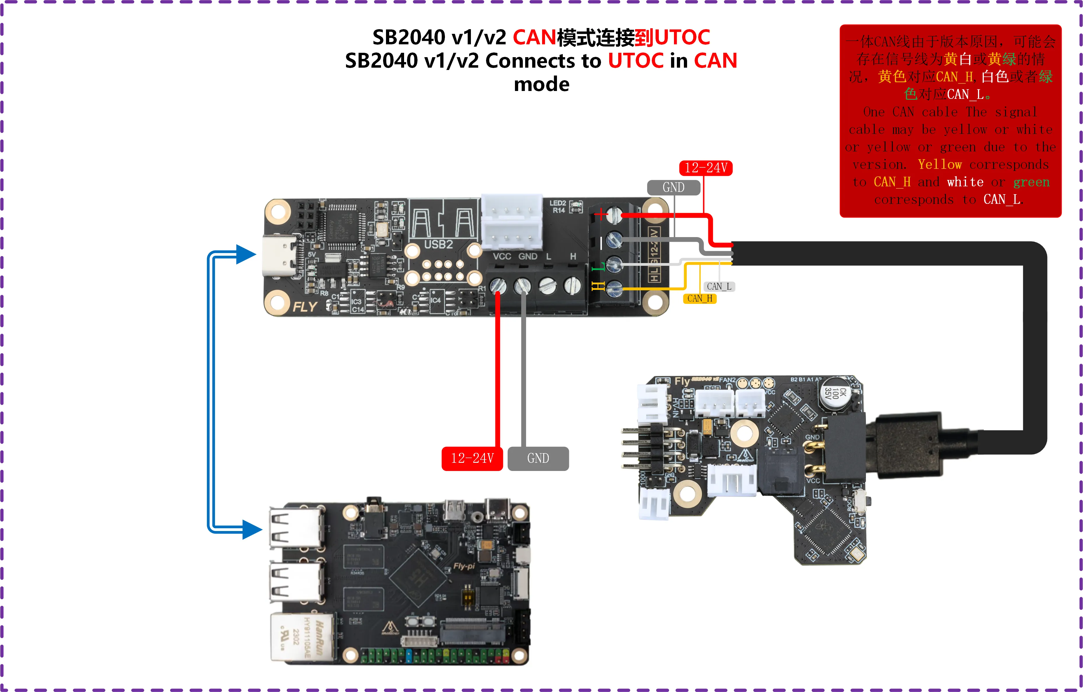 • Please connect the tool board to UTOC or a main board flashed with USB to CAN firmware;