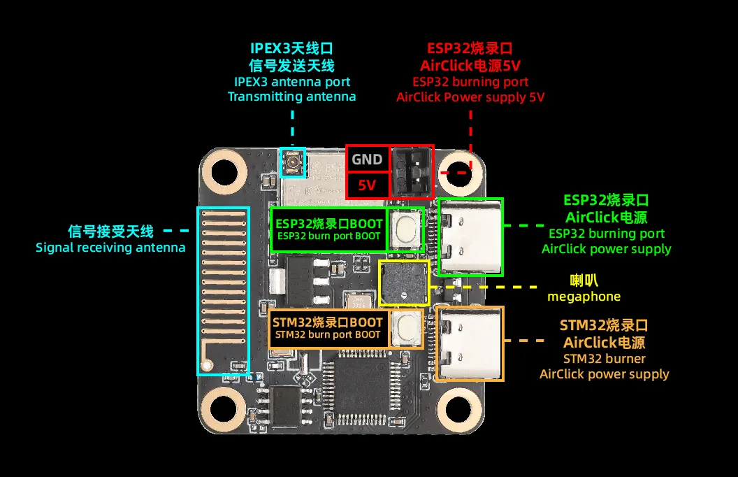 • Ce produit est alimenté par 5V et peut être alimenté via le port type c ou le connecteur PH2.0-2P.
