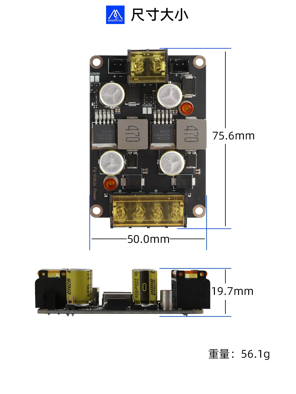 Le module de surtension FLY-VoltUp Power est conçu pour les applications de conduite haute tension, permettant aux utilisateurs d'atteindre une conduite haute tension sans avoir à acheter un alimentation haute tension supplémentaire, ce qui aide à économiser de l'espace lors de la conception d'imprimantes 3D.