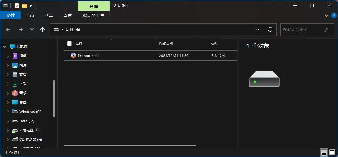 7. Retirez la carte TF et insérez-la dans l'ordinateur, si le fichier firmware.bin disparaît de la carte SD et qu'apparaît FLY.CUR, cela signifie que le flashage a réussi