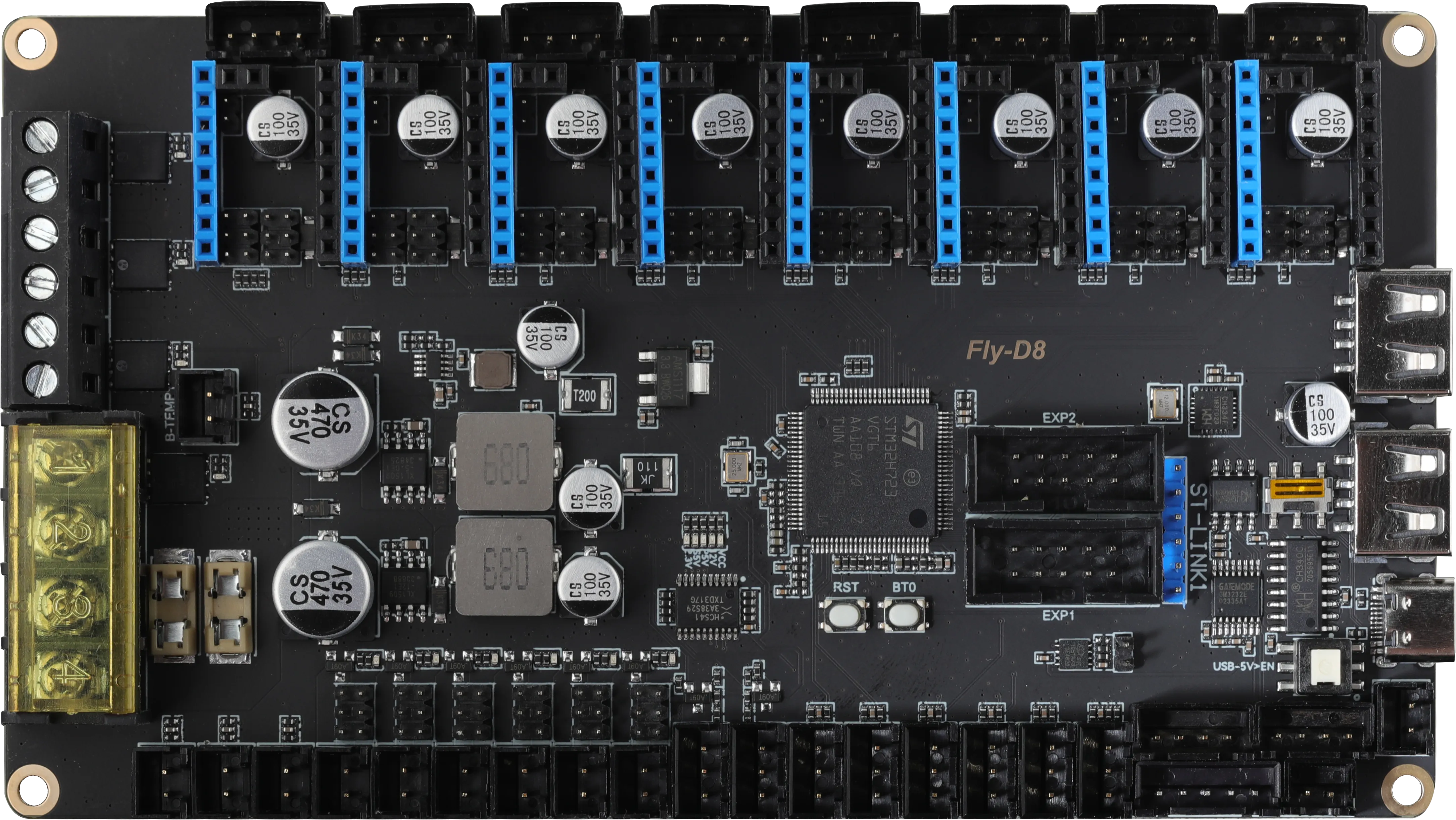 La Mellow Fly-D8 est une carte mère haute performance pour imprimante 3D développée par l'équipe Fly3D de la société Guangzhou Mellow Electronics Technology. Elle supporte jusqu'à huit moteurs pas à pas.