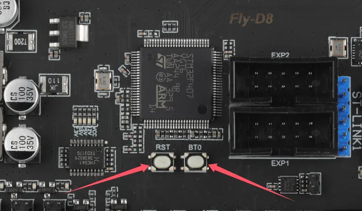 • Avantages : Un double appui rapide sur le bouton de réinitialisation (reset) ou une coupure d'alimentation rapide deux fois permet d'entrer dans le firmware Katapult, auquel cas une LED clignote sur la carte mère.