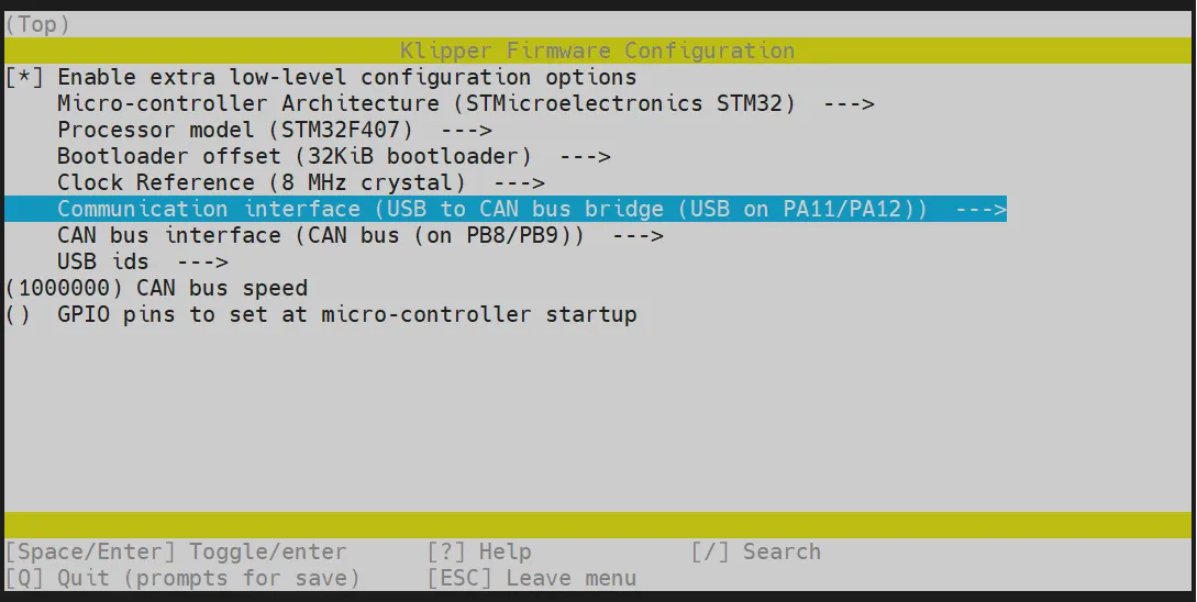 cd ~/klipper && rm -rf ~/klipper/.config && rm -rf ~/klipper/out && make menuconfig