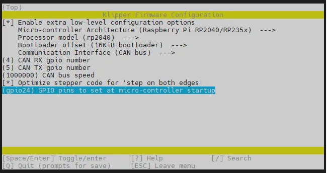 4. La touche Q permet de quitter la page de configuration du firmware Klipper