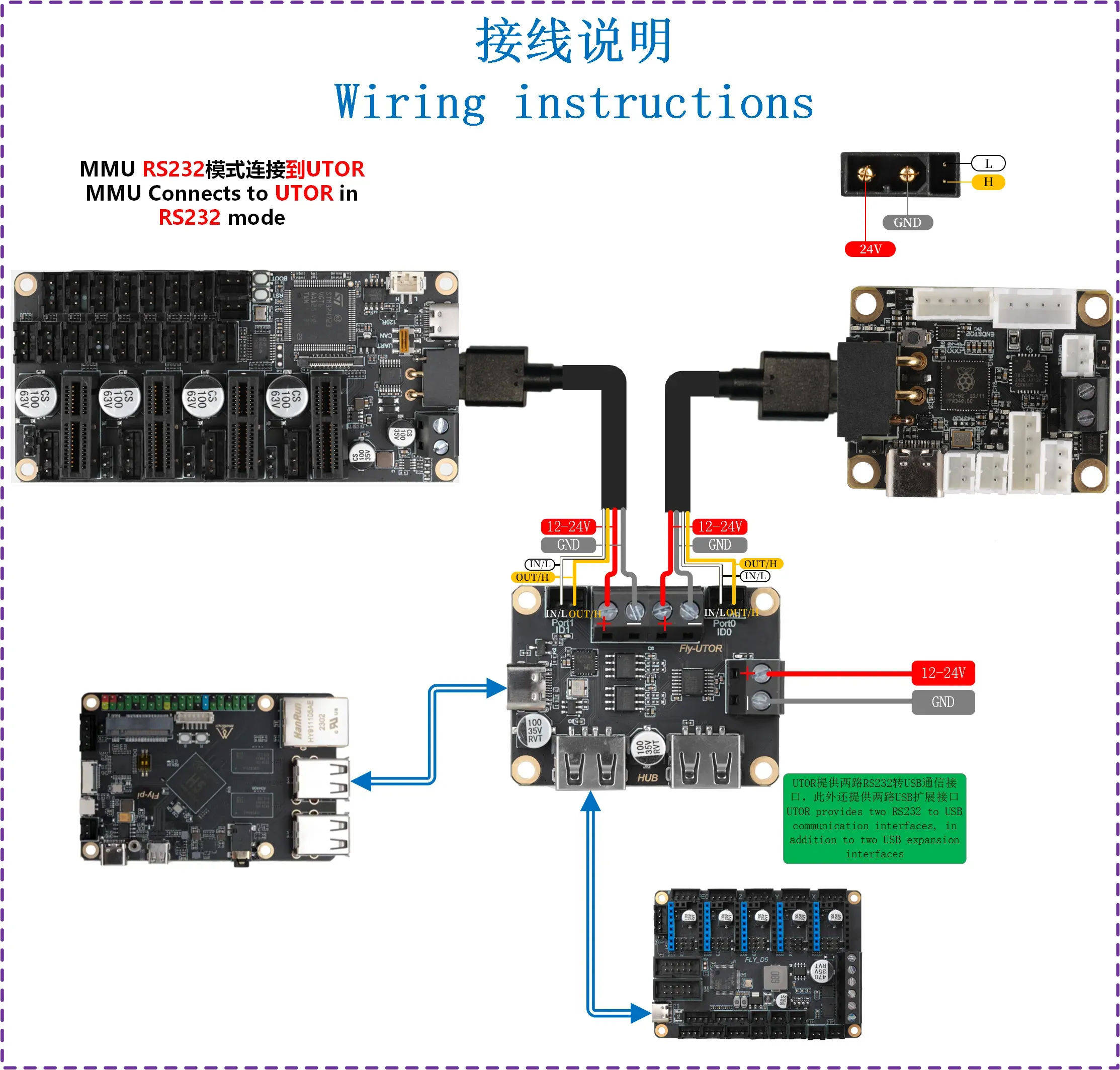 • Utilisez un câble de données XT30 pour connecter la carte d'interface à l'UTOR avant de rechercher l'ID. Voir ci-dessous un schéma de câblage de référence.
