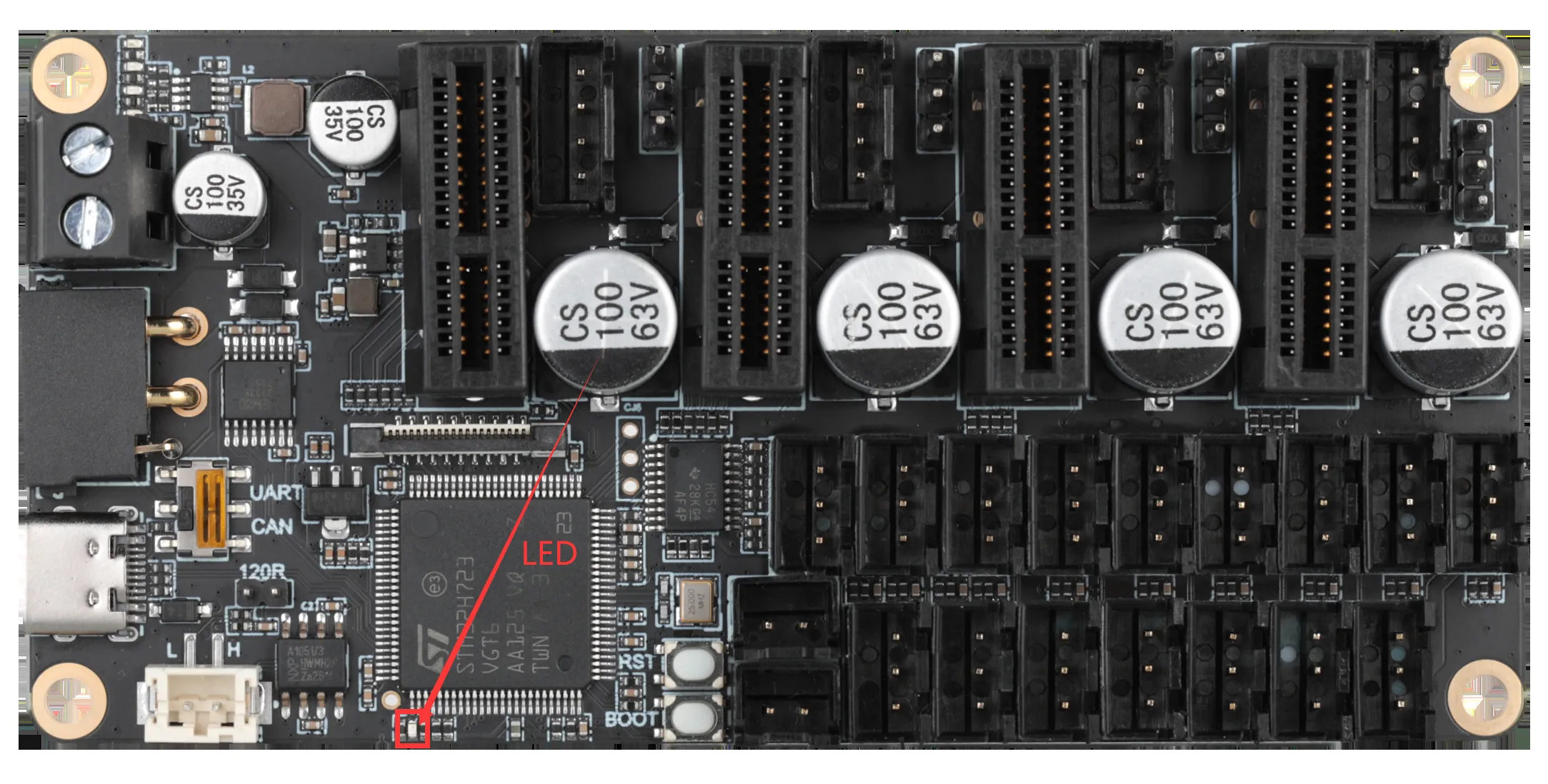 • XT30データケーブルでツールボードをUTOCまたはブリッジファームウェアが焼込まれたメインボードに接続した後、メインボードのLEDが点滅しているはずです。