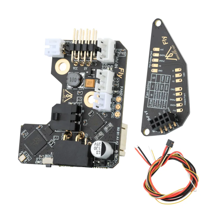 FLY SB2040は広州メイロン電子科技がVORON Stealthburberプリントヘッド用に開発したプリントヘッド用ツールボードです。このツールボードを使用すると、メインボードとプリントヘッドの間の複雑な配線を4本のケーブルで代替でき、レイアウトを最適化できます。SB2040は36ステッピングモーターに対応しており、CANトランシーバー、USBポート、TMC2209ドライバー、ADXL345加速度センサー、2つの制御可能なファンなど、多様な機能を搭載したツールボードです。このツールボードはKlipperファームウェアに対応しています。
