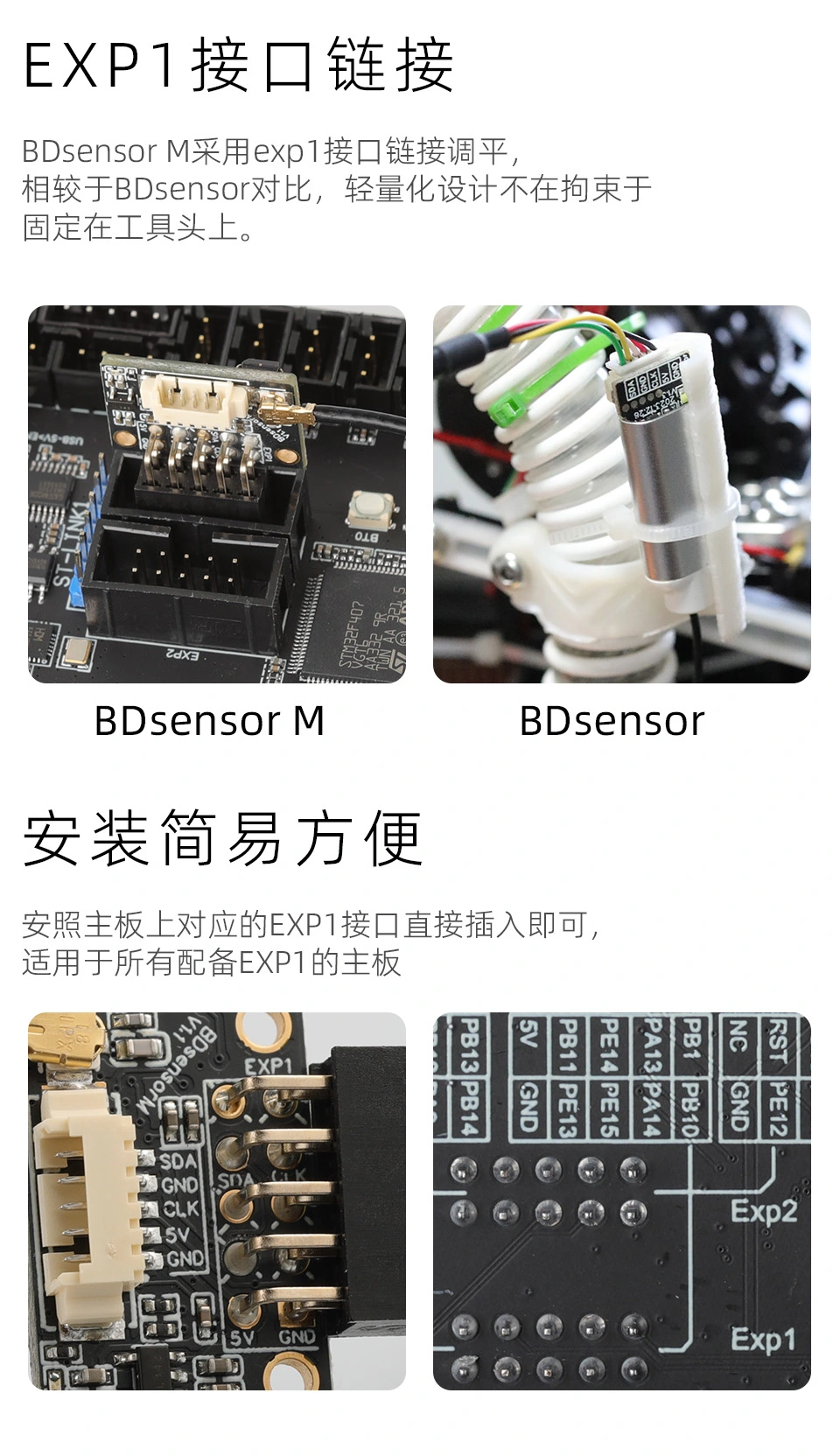 - 연결: 메인보드 (BDsensor는 메인보드의 EXP1 인터페이스를 사용함)