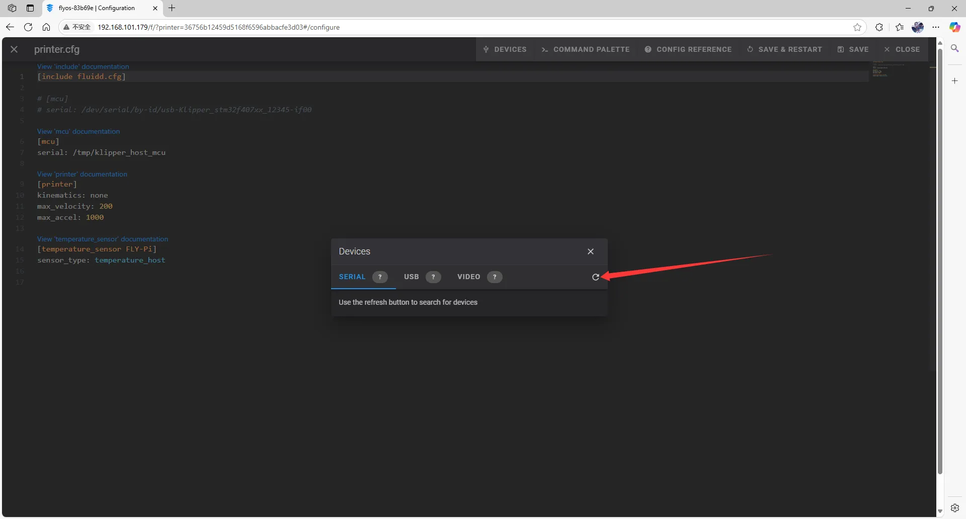 1. printer.cfg에 들어간 후 상단 오른쪽의 DEVICES 클릭