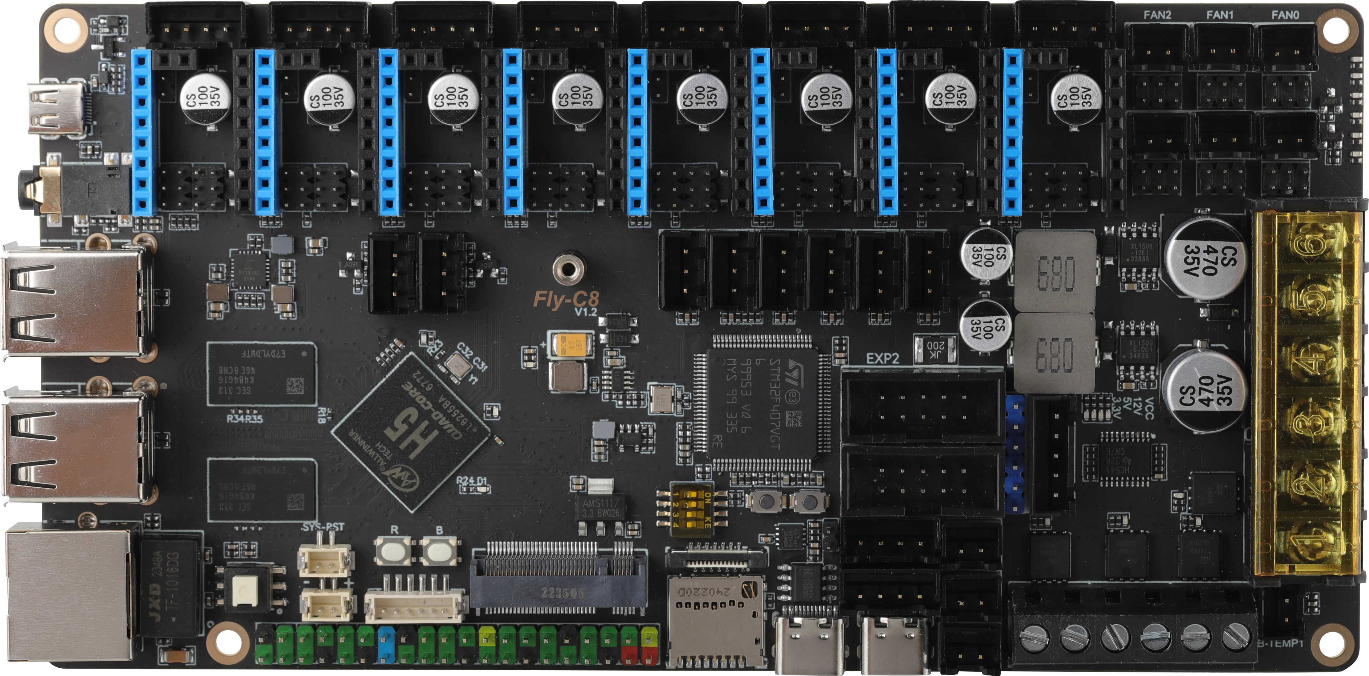 • 시스템에 klipper, moonraker, mainsail, fulidd, klipper-screen, Crowsmest, 공진 보상 플러그인 및 numpy가 사전 설치되어 있어 소스 변경 등 복잡한 작업 없이 초보자도 쉽게 사용 가능(TF 카드 또는 M2WE 구매 필요)