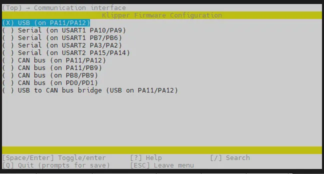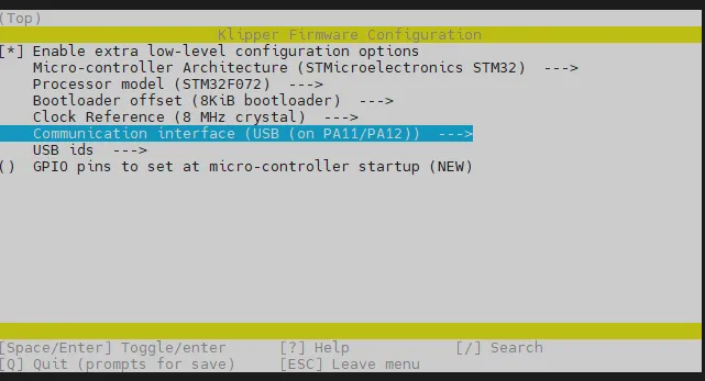 4. Q 키는 Klipper 펌웨어 구성 페이지를 종료합니다.