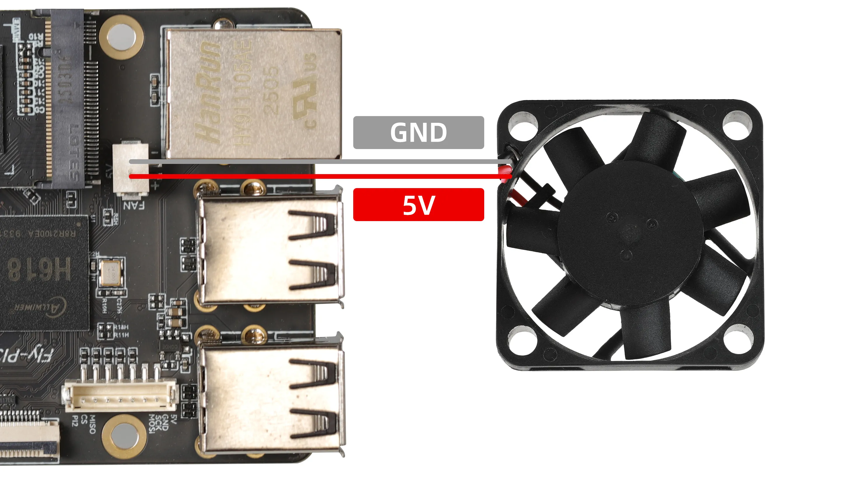 • 단자 사양: 팬 연결 시 ZH1.5-2P 단자를 사용하십시오. 구체적인 배선 방법은 아래 그림과 같습니다.