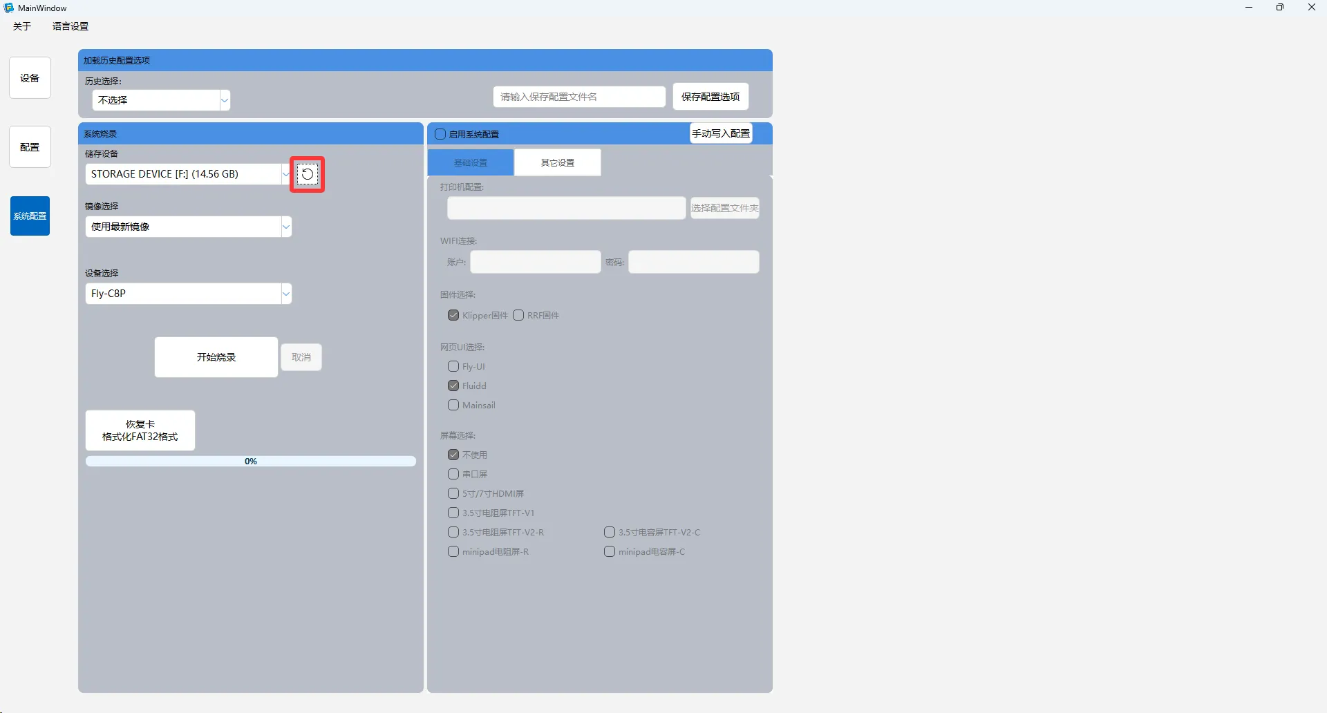 저장 장치 옆의 새로 고침 버튼을 클릭하여 시스템이 연결된 메모리 카드를 정확하게 인식하도록 확인합니다.