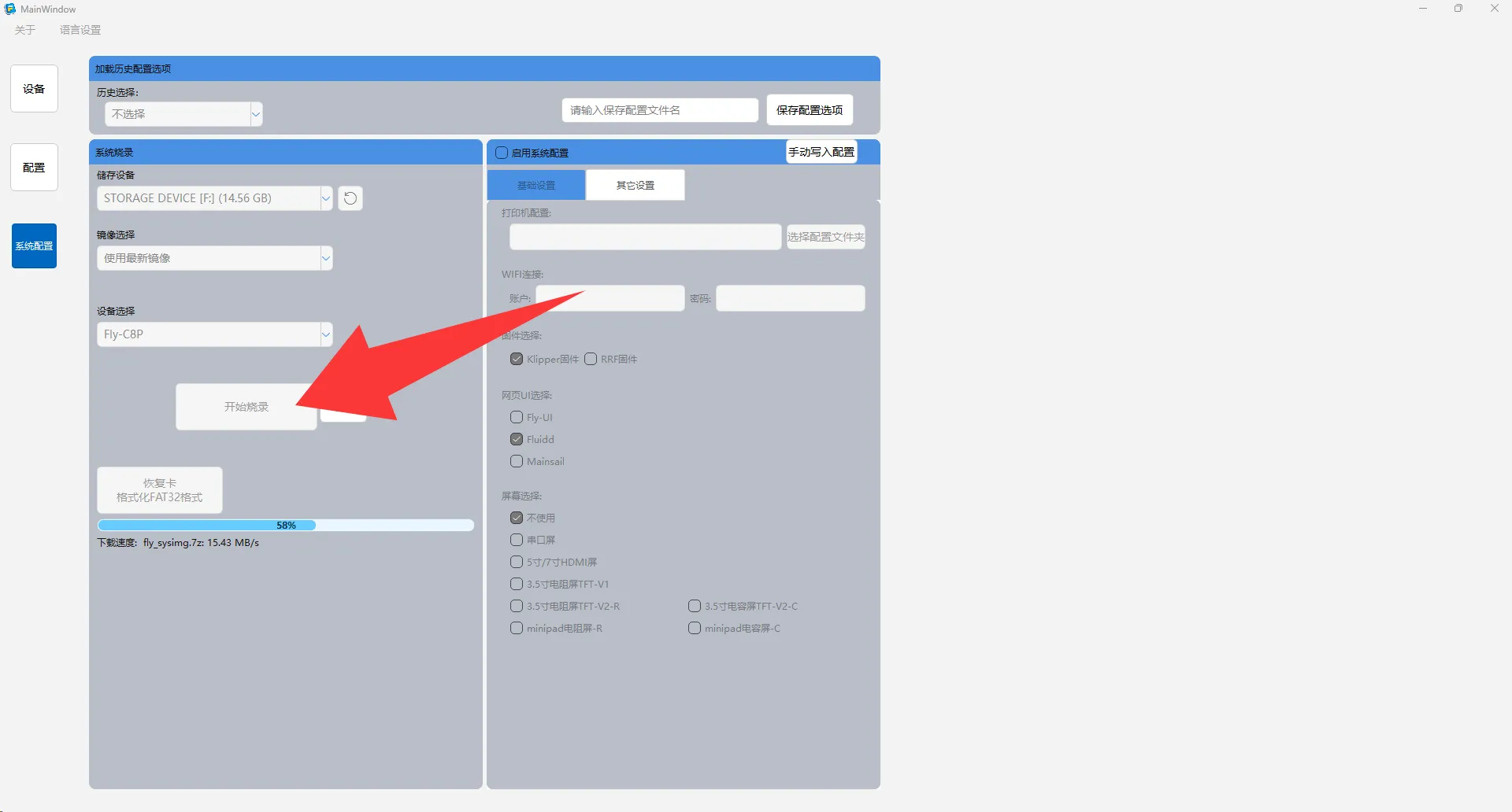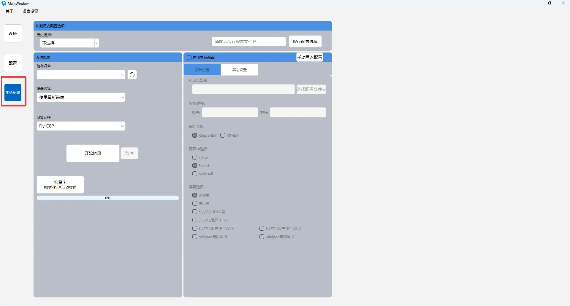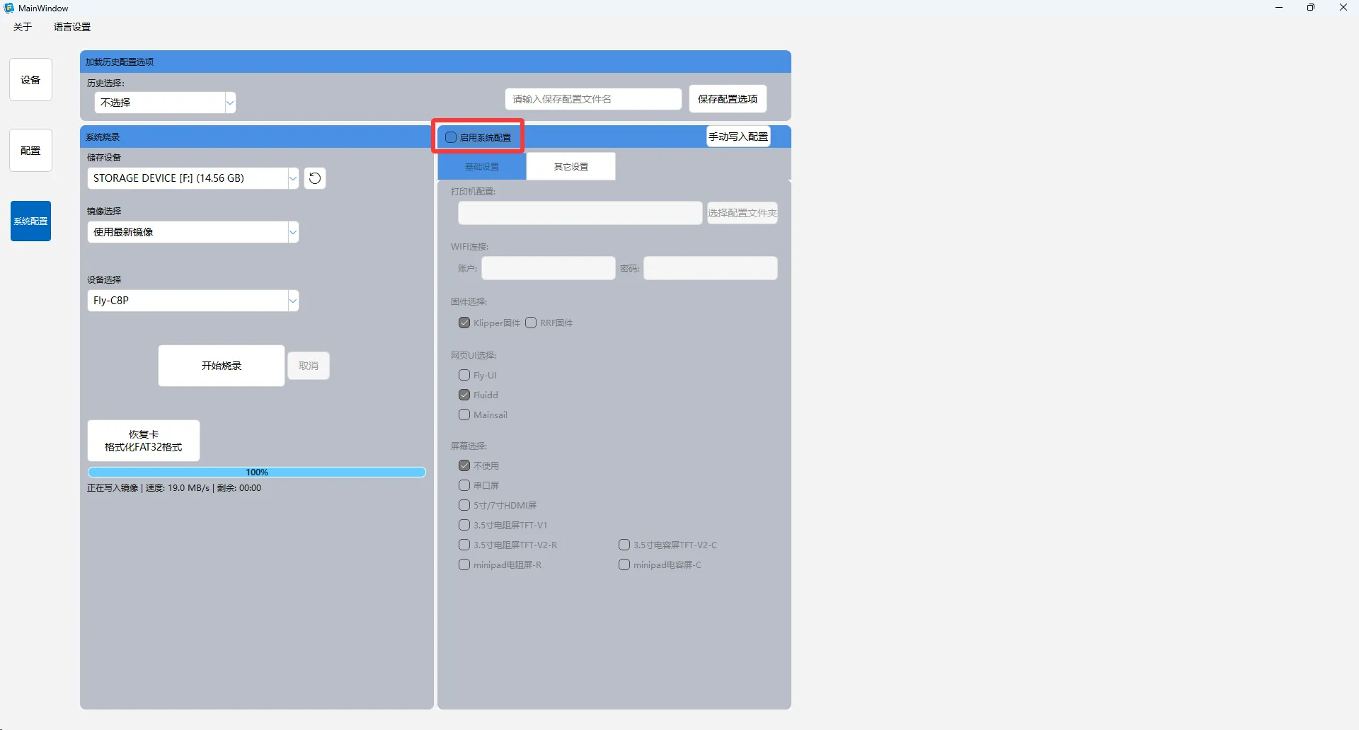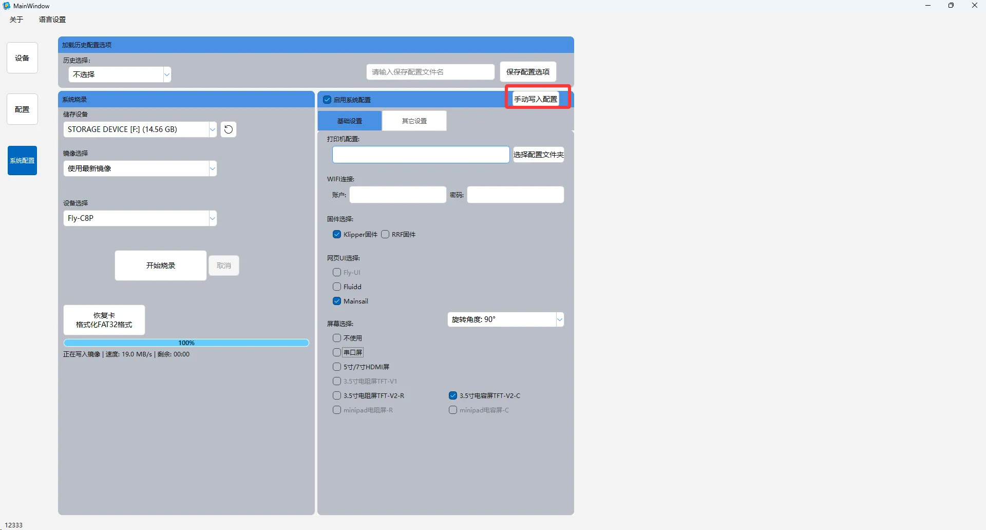 작업 안내: 모든 설정 항목의 선택 및 수정을 완료한 후 반드시 수동으로 설정 쓰기 버튼을 클릭하여 모든 설정이 시스템 카드에 정확하게 저장되도록 해야 합니다.