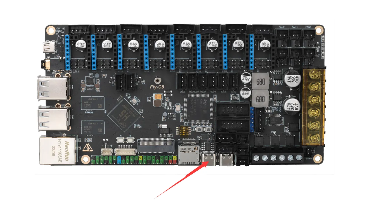 • Подключите хост-компьютер FLY и компьютер с помощью кабеля USB Type-C