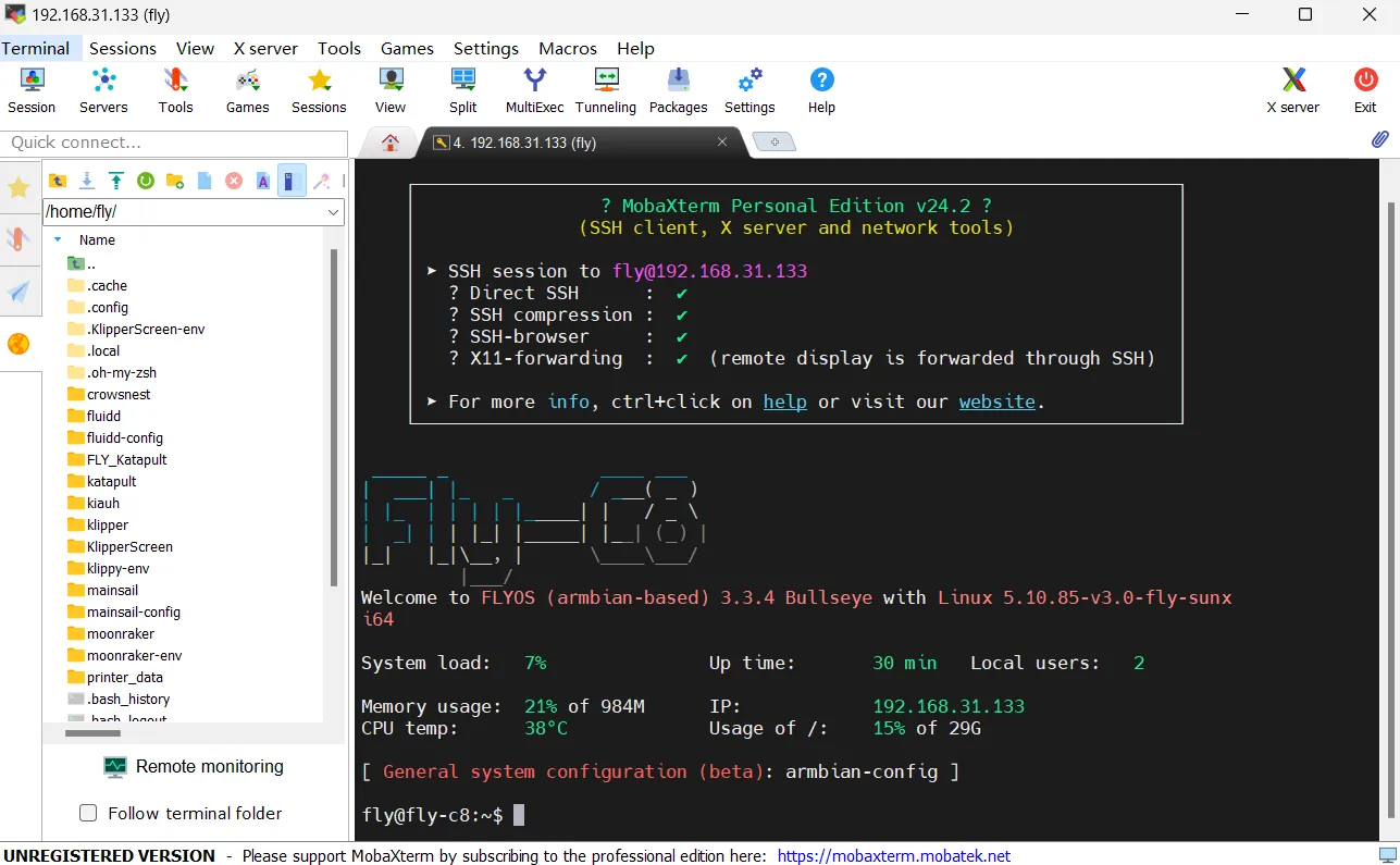 • Имя пользователя по умолчанию для FlyOS-FAST — root, пароль по умолчанию — mellow