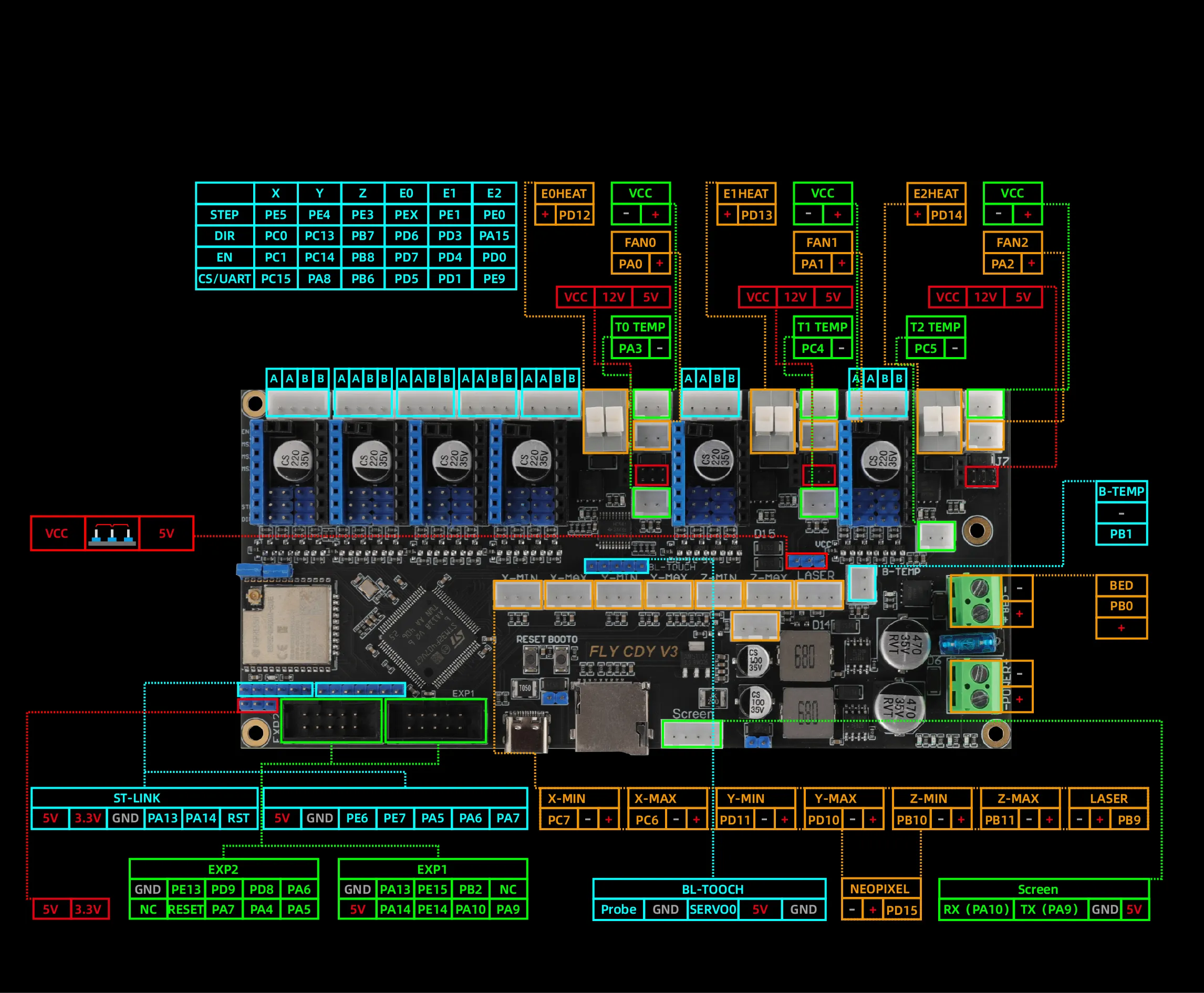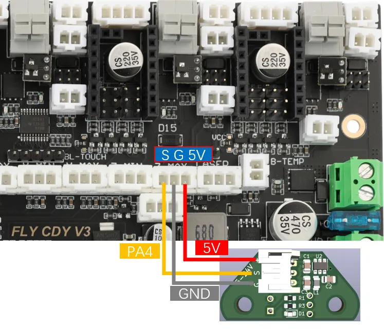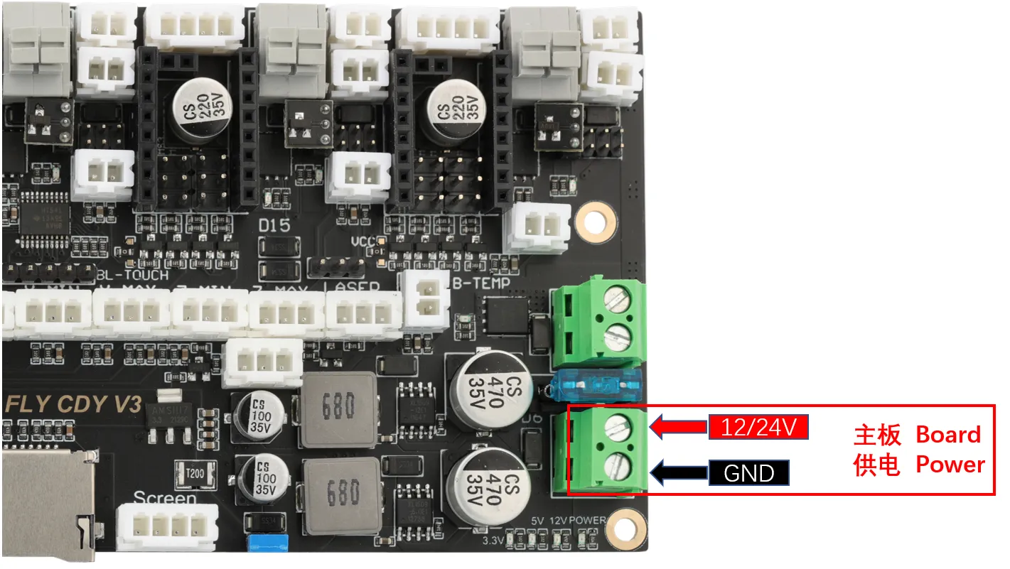 заметкаНе рекомендуется подключать Voron Tap к 24В. В некоторых версиях использование 24В с определенной вероятностью может привести к перегоранию датчика Tap. Это не проблема продуктов FLY, а конструктивный недостаток Voron Tap, пожалуйста, примите к сведению!!!