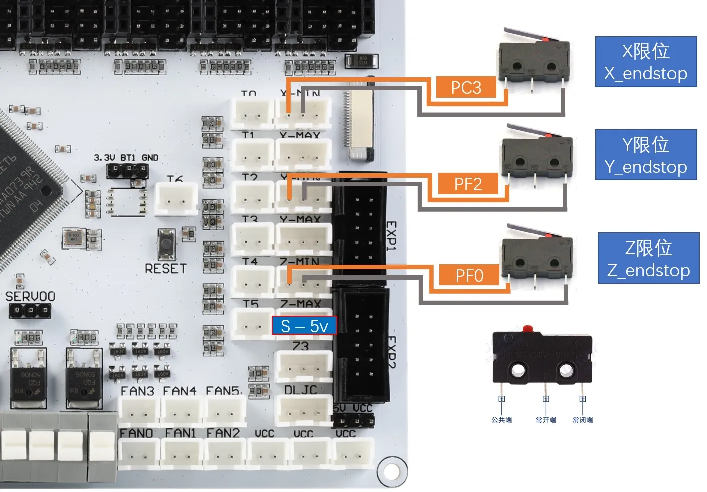 • Концевые выключатели бывают двух типов: нормально открытые (NO) и нормально закрытые (NC). Обычно в 3D-принтерах рекомендуется использовать нормально закрытые (NC) выключатели, так как в случае неисправности цепи концевого выключателя система немедленно сообщит об ошибке, что поможет избежать столкновений и повреждений принтера.