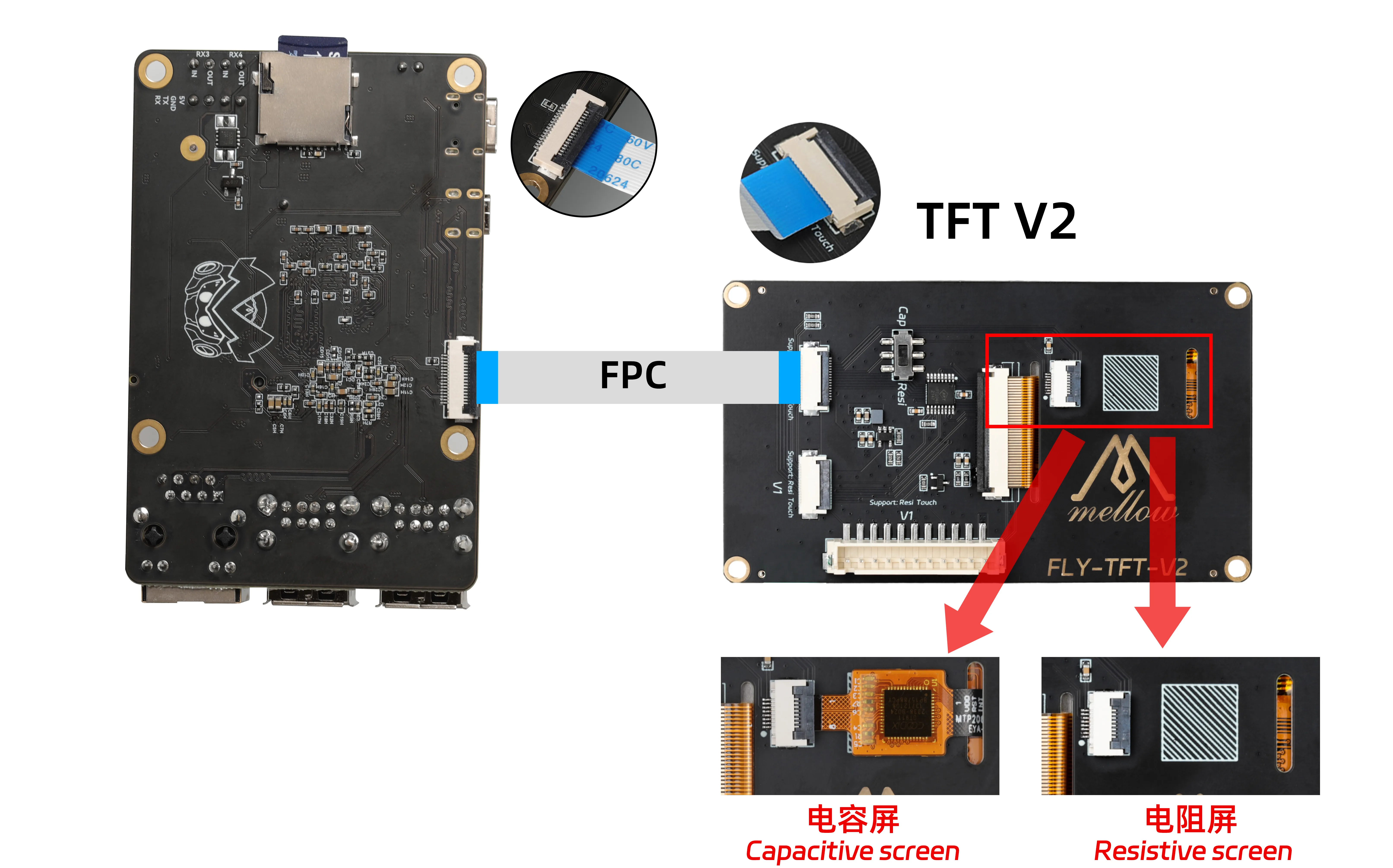 - При подключении TFT или HDMI экрана с помощью FPC-шлейфа обязательно выполняйте операцию при полном отключении питания, чтобы предотвратить повреждение экрана.