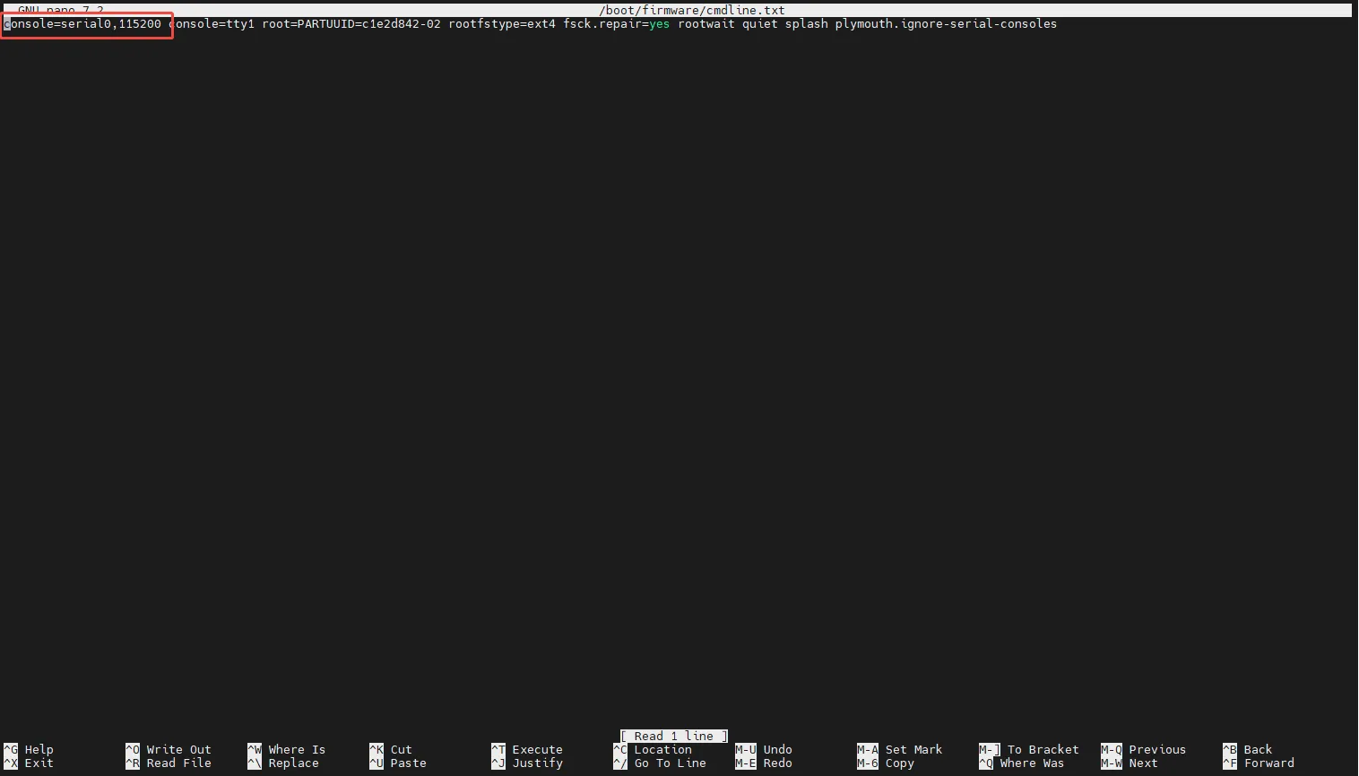 /boot/firmware/cmdline.txtsudo nano /boot/firmware/cmdline.txt- Если есть
