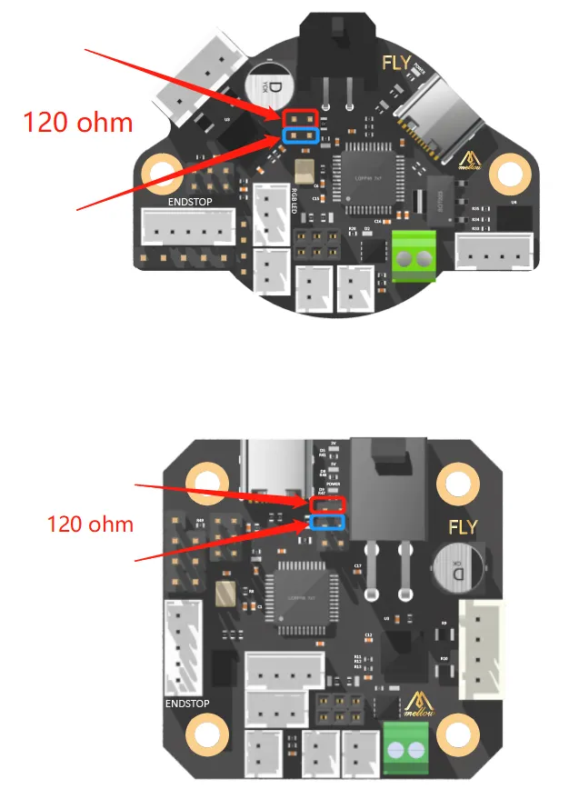 • Убедитесь, что сопротивление между CAN H и CAN L составляет около 60Ω при измерении мультиметром при отключенном питании. Если оно составляет 120Ω, необходимо установить перемычку 120Ω. Если сопротивление составляет около 40Ω, перемычку следует удалить.