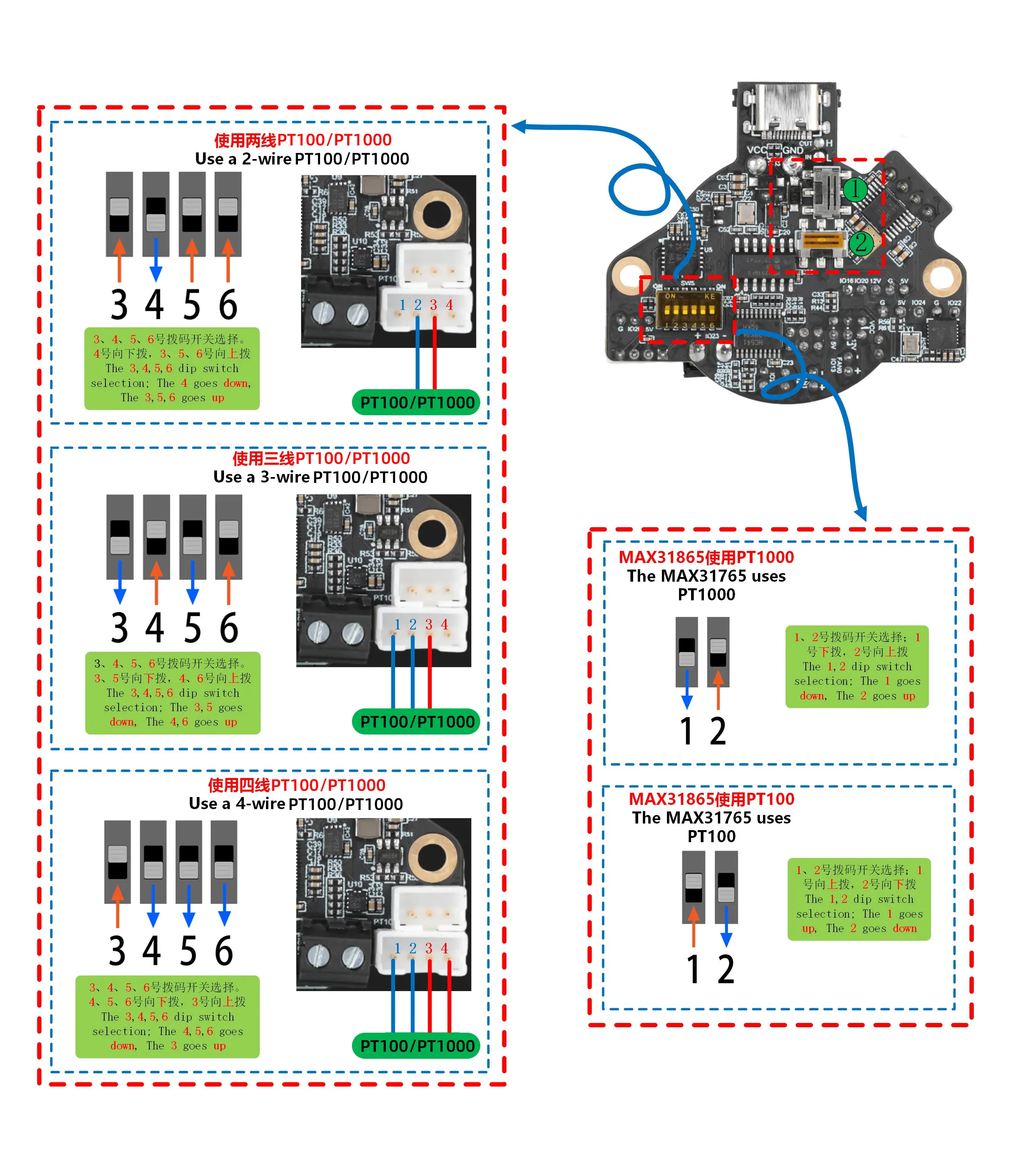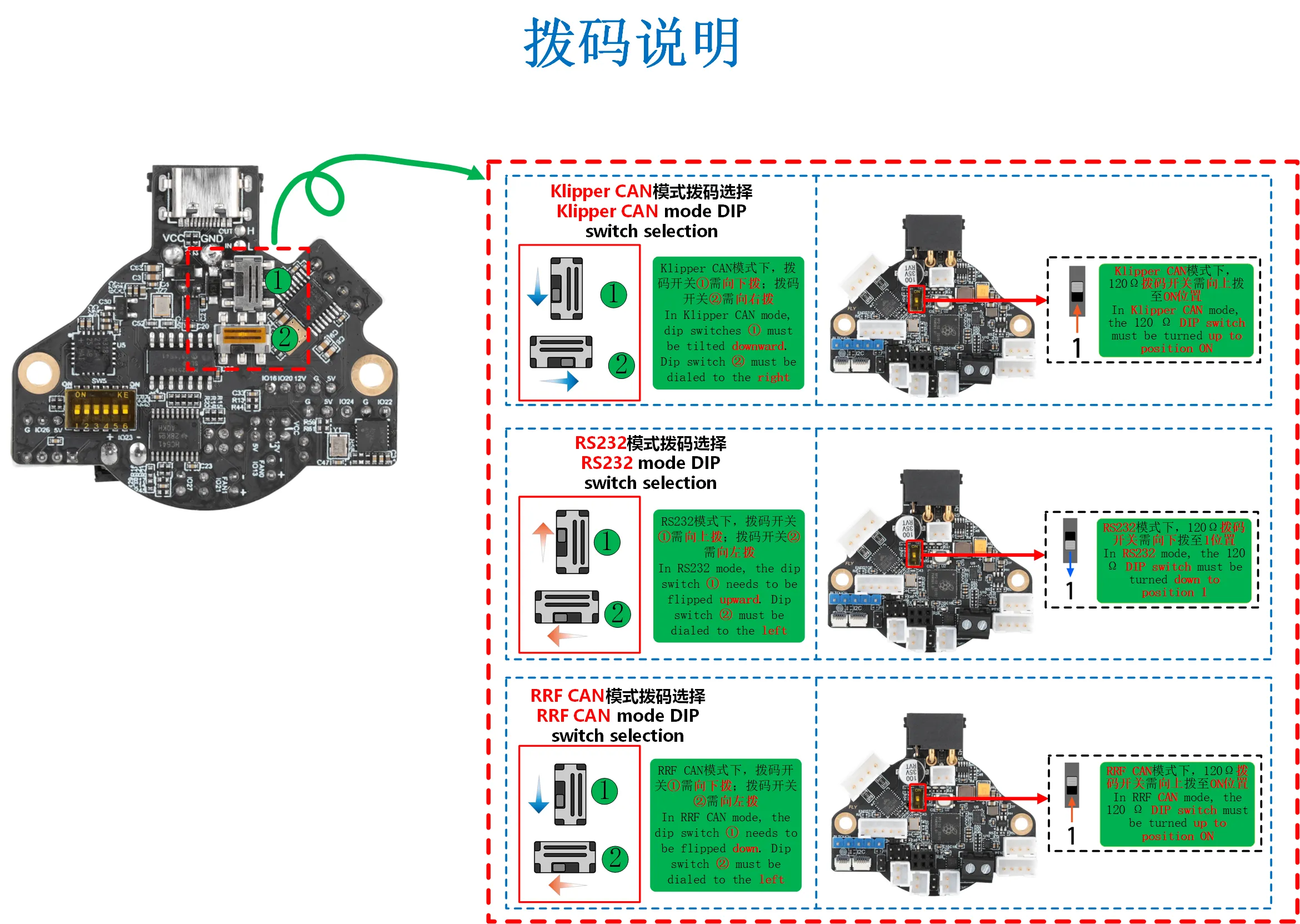 Обратите внимание, что SHT36 V3 поддерживает три способа подключения, и для нормальной работы требуется изменить положение переключателей и прошитьfirmware.